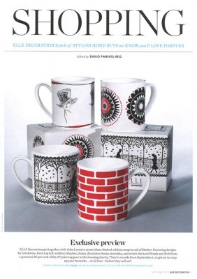 Posted by on Wednesday 25th August, 2010In the September issue of Elle Deco you can find an exclusive preview of the mug I designed with Elle Decoration and John Lewis in aid of the homeless charity Shelter and to celebrate Elle Deco’s 21st birthday. The mugs are available for £7 from John Lewis and associated stores from September 1st and 50% […]