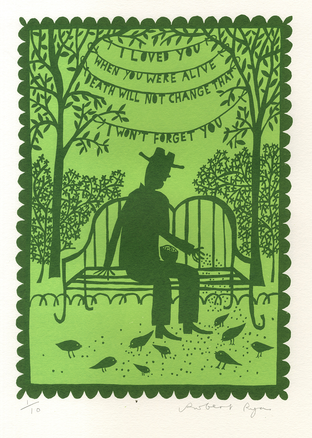 Two colour screenprint (Green and dark green) printed on White Somerset Satin Paper (410gsm)