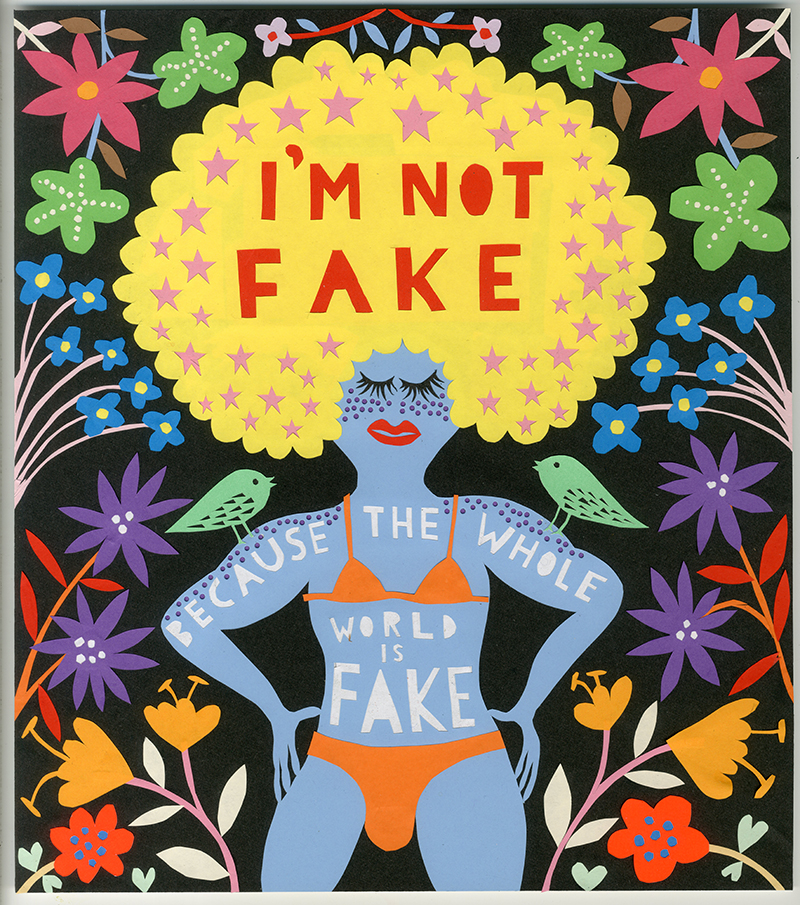 ‘I’m Not Fake’ Hand-cut paper READS: “I’m not fake because the whole world is fake.” DIMENSIONS: 31 x 27.5cm approx.
