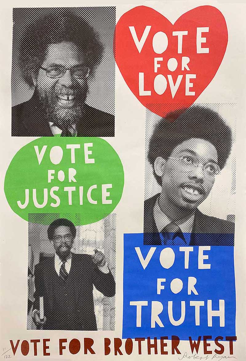 Four colour screenprint in green, blue, red and black. Printed on 110gsm Fedrigoni poster paper.