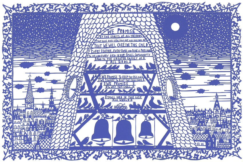 ‘We promise by the spirits of all the birds that have ever been, that are and ever will be, that we will care for this child. Every feather, every bone and beak is precious to us and every bird in our small community and to the greater family of all the birds. We promise to keep the egg safe. We promise to keep the child safe. We promise to help this small, small bird in this big, big world’